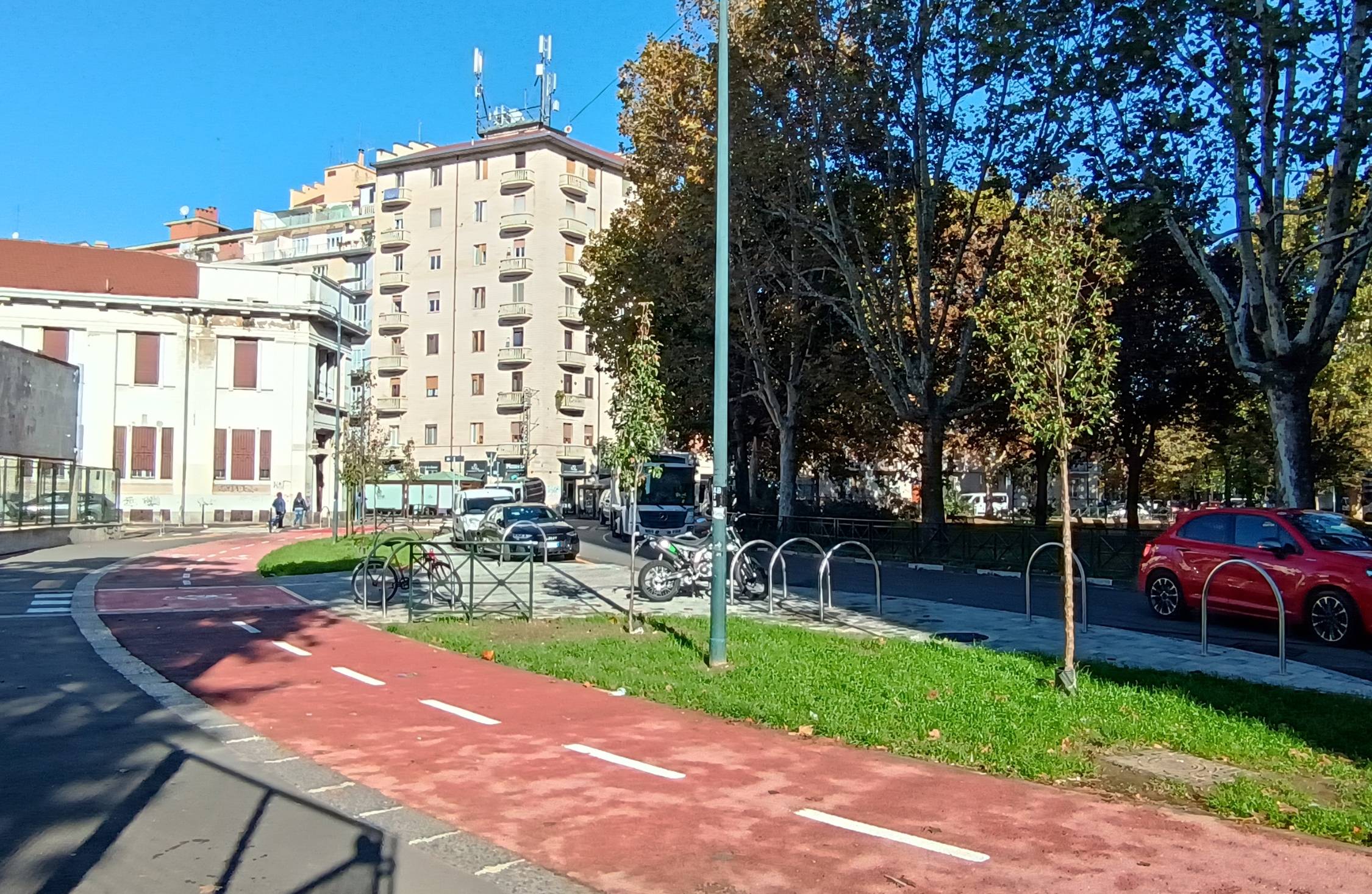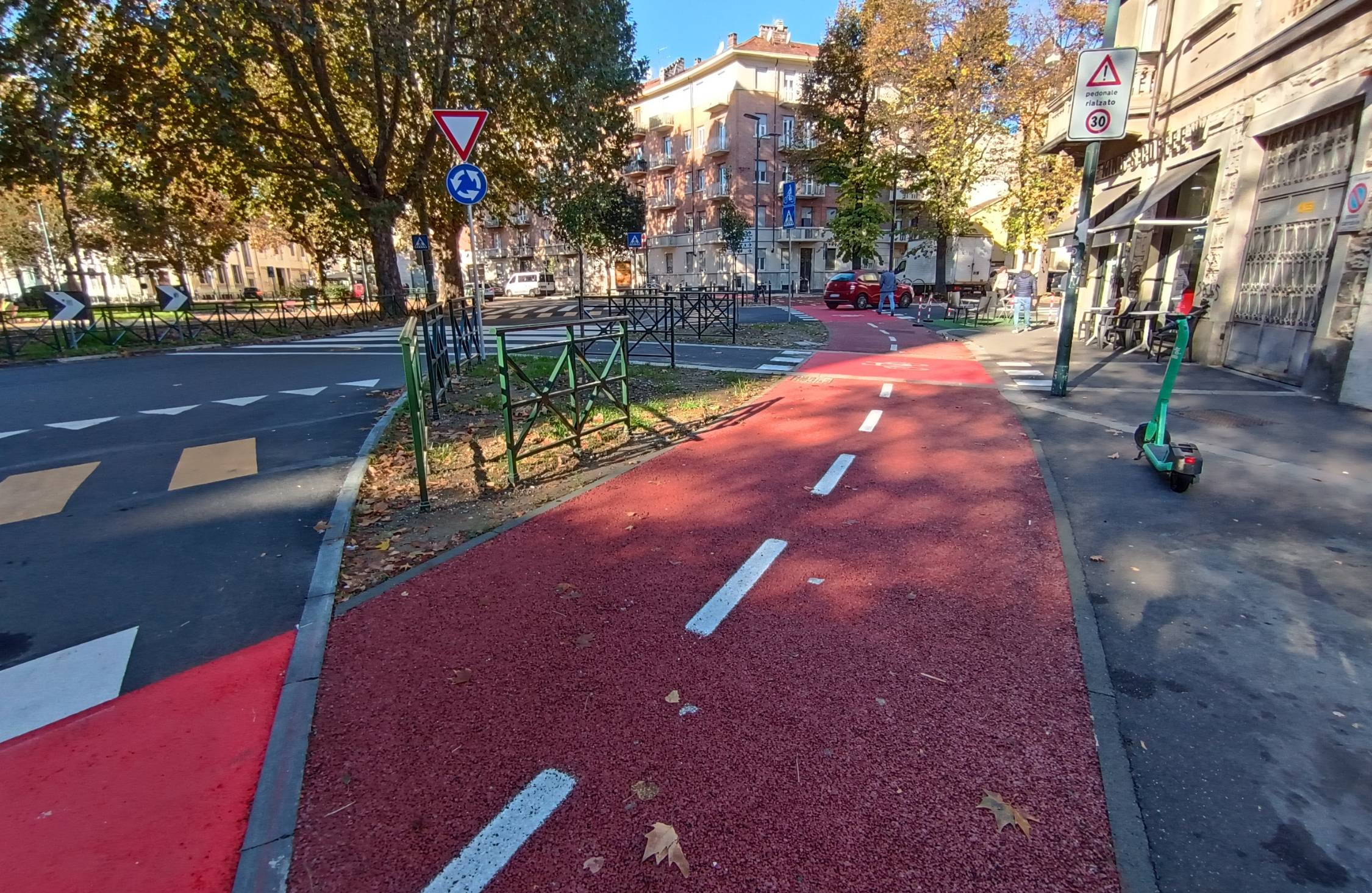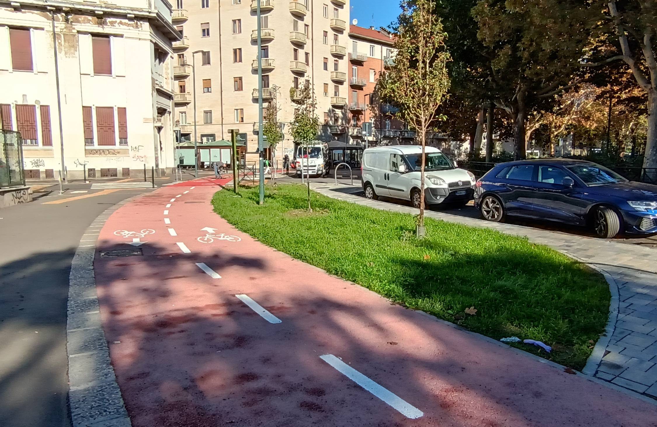 Il progetto ha previsto la creazione di un anello ciclabile in piazza Robilant per il collegamento dei percorsi ciclabili esistenti.