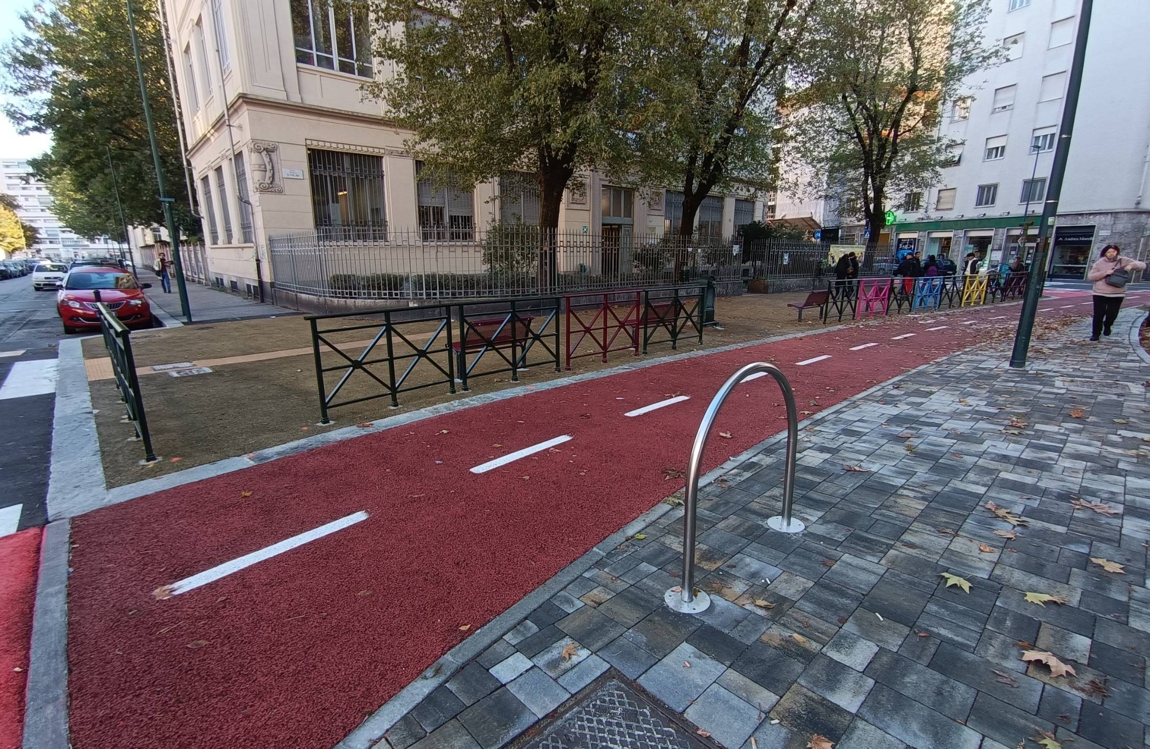 L’intervento che ha compreso anche la riqualificazione dei marciapiedi e la costruzione di nuove banchine verdi a protezione della ciclabile.