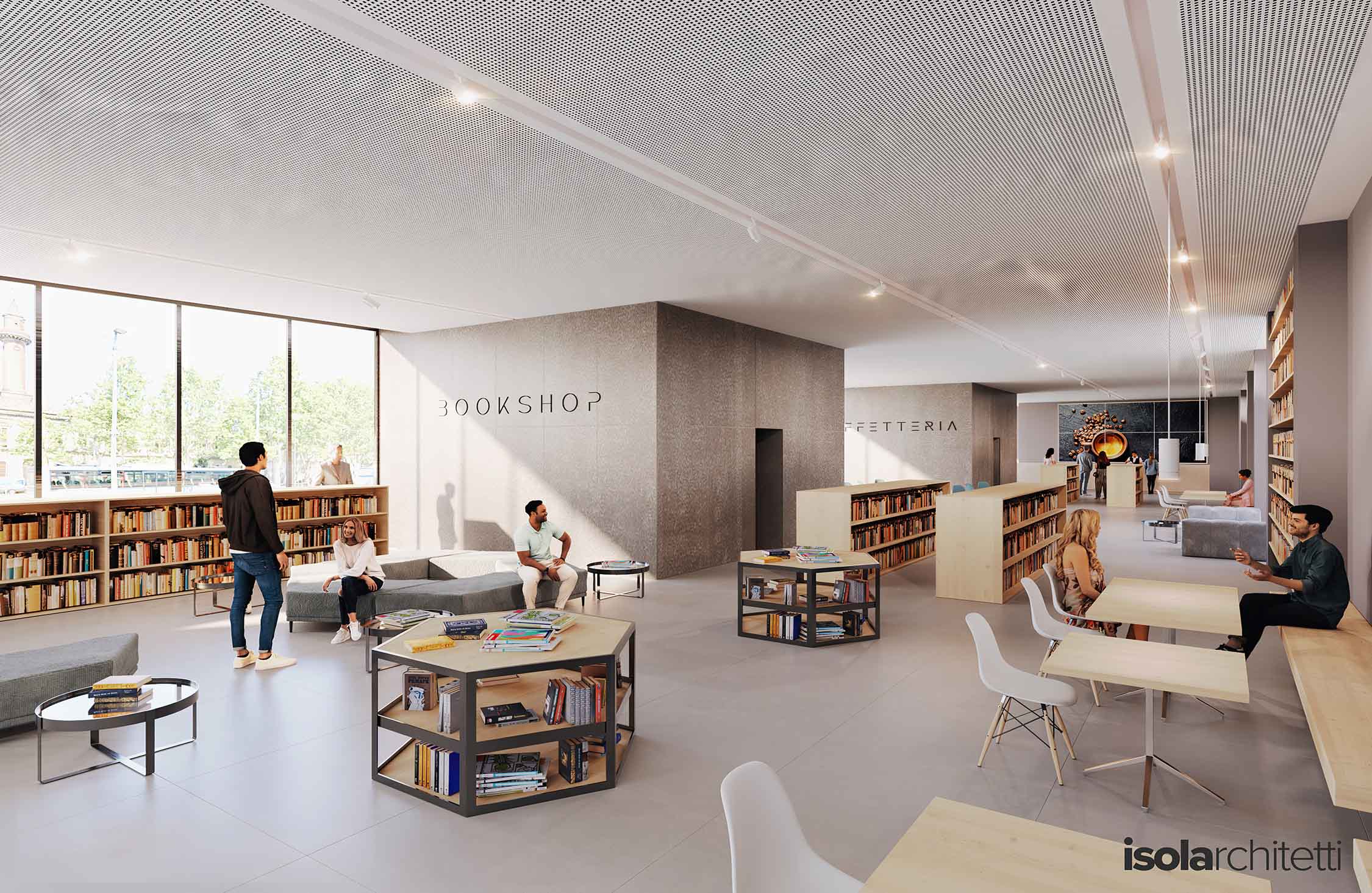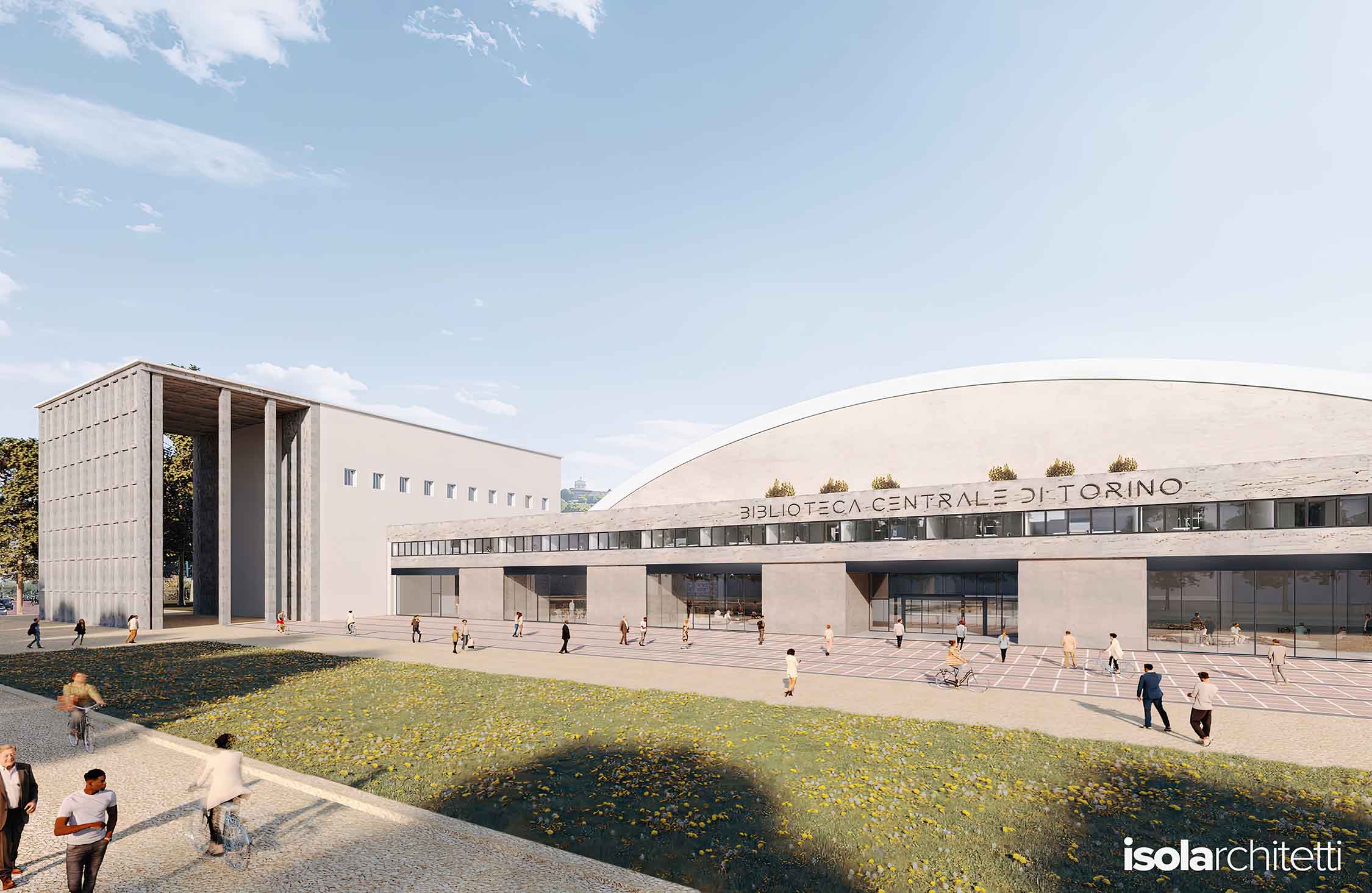 Il progetto prevede la realizzazione della nuova biblioteca civica a Torino Esposizioni, aperta verso la città e verso il parco. L’accesso alla nuova biblioteca si collocherà nel maestoso portico esistente lungo corso Massimo d’Azeglio, dove una serie di spazi di accoglienza e connessione si integreranno con alcune funzioni pubbliche (caffetteria letteraria, laboratorio di sperimentazione urbana e sociale per la progettazione partecipata di iniziative culturali).