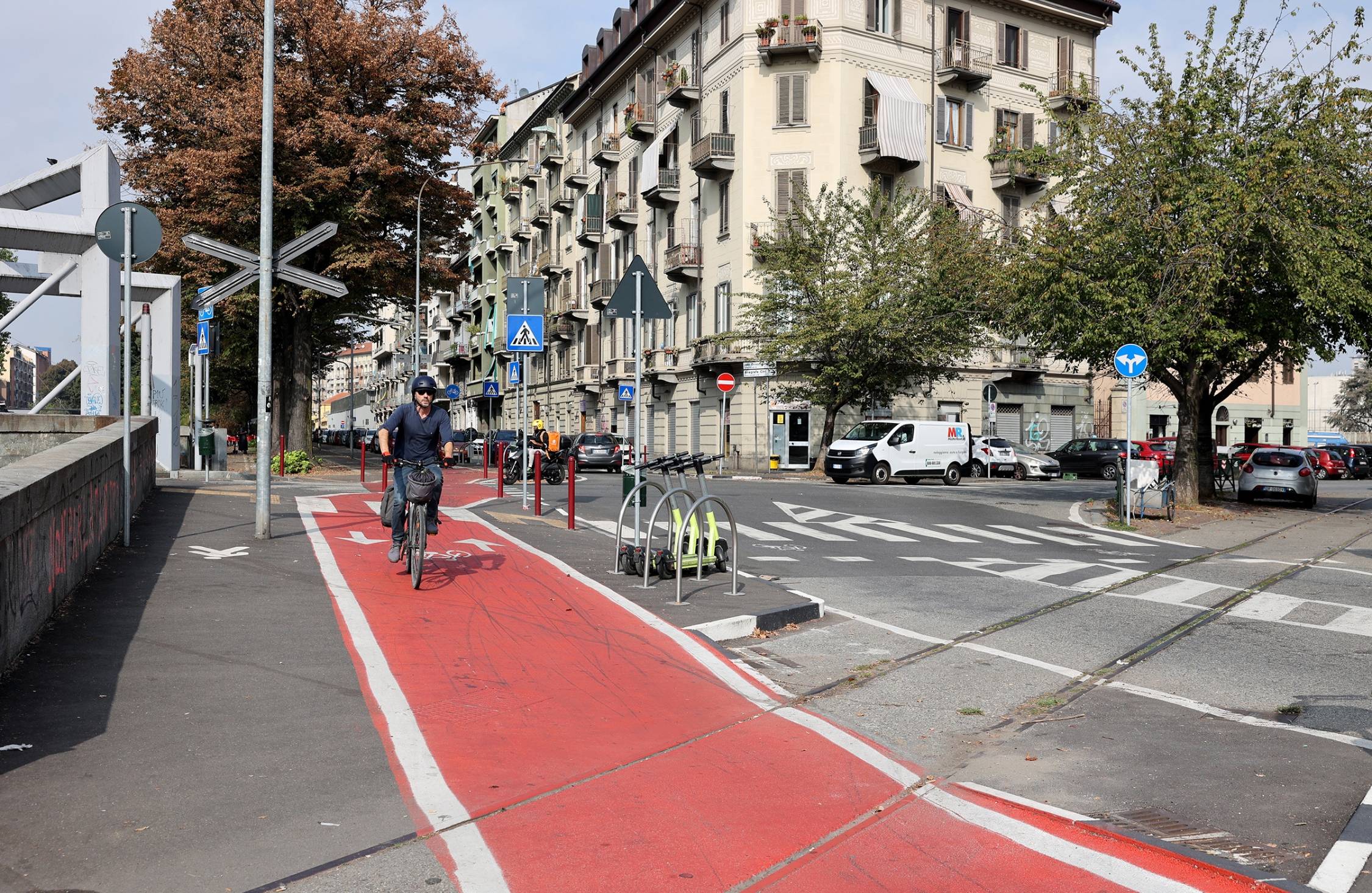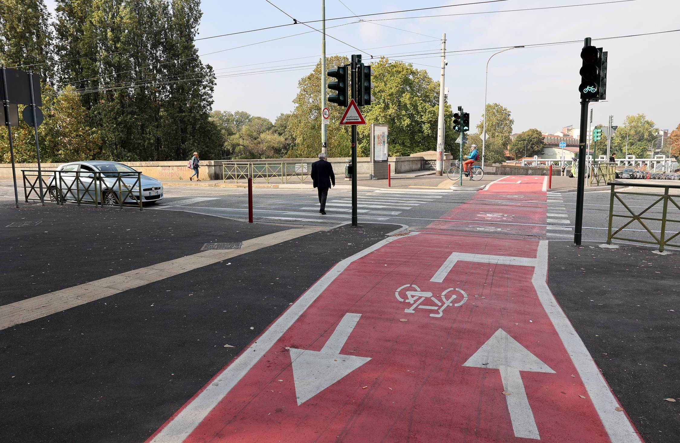 Il progetto ha visto la riqualificazione del lungo fiume con una pista ciclabile separata dal percorso per i pedoni, il recupero e l’implementazione del verde, la revisione degli incroci semaforizzati, la connessione con le piste ciclabili esistenti e la creazione di aree sosta per i pedoni.