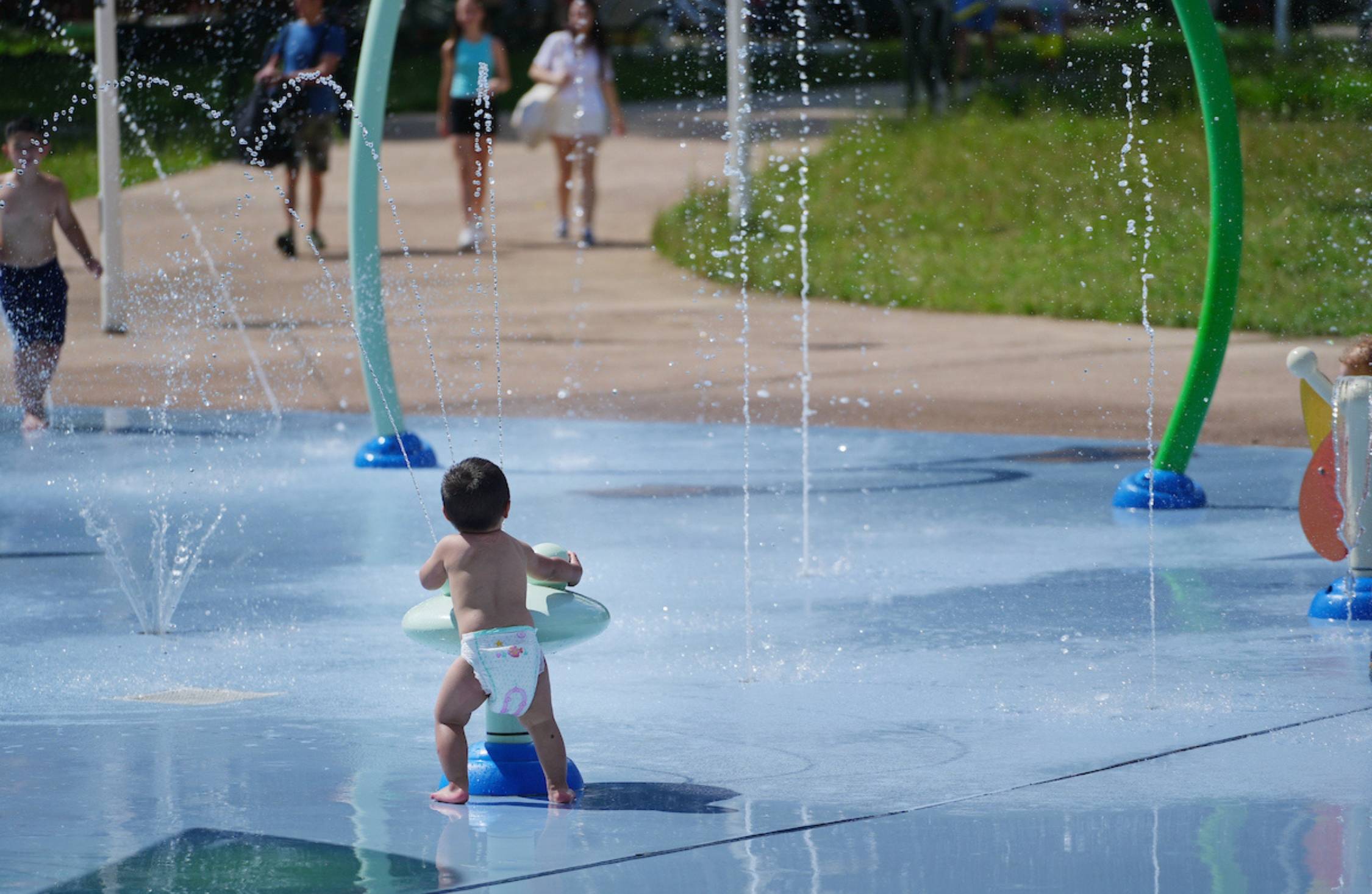 Nei 9.500 mq interessati dagli interventi è stata realizzata una piattaforma per giochi d’acqua di oltre 600 mq con 41 attrezzature di giochi d’acqua per splashpad; sono stati installati 39 elementi di arredo urbano (2 gazebo, 4 tavoli con panche, 4 piattaforme solarium, 9 archi portabici, 10 cestini portarifiuti, 20 panchine a tre assi); 6 pannelli informativi e realizzati 19 nuovi piantamenti.