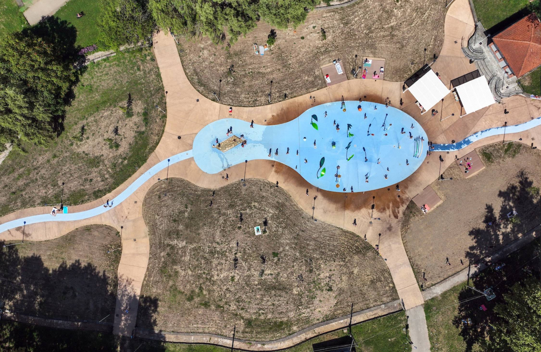 L’intervento al parco della Pellerina ha previsto il recupero dell’invaso artificiale per la realizzazione di un’area con giochi d’acqua dinamici suddivisa per fasce di età, la realizzazione di percorsi, aree verdi alberate e il posizionamento di attrezzate con elementi di arredo urbano e pergole frangisole.