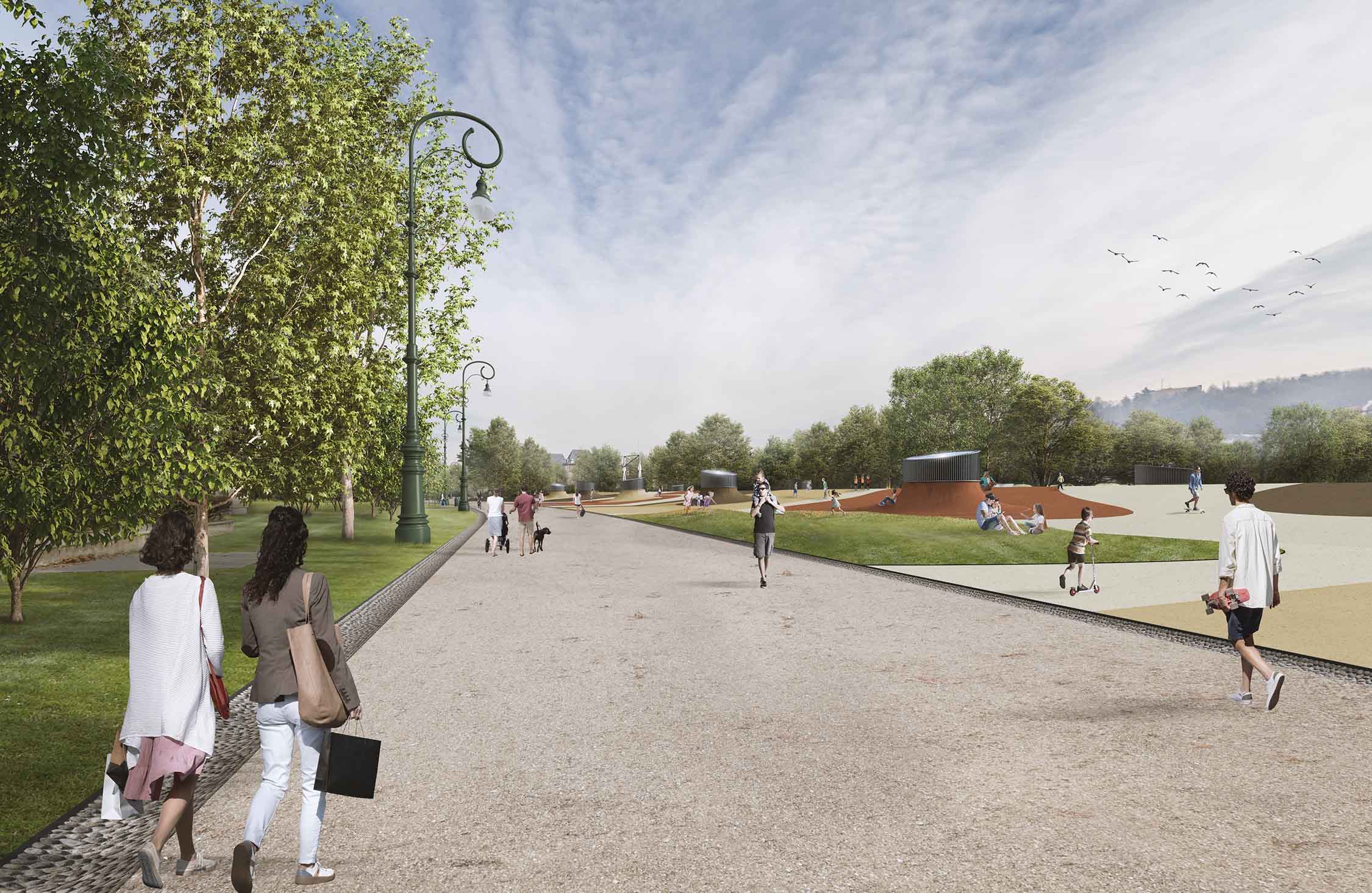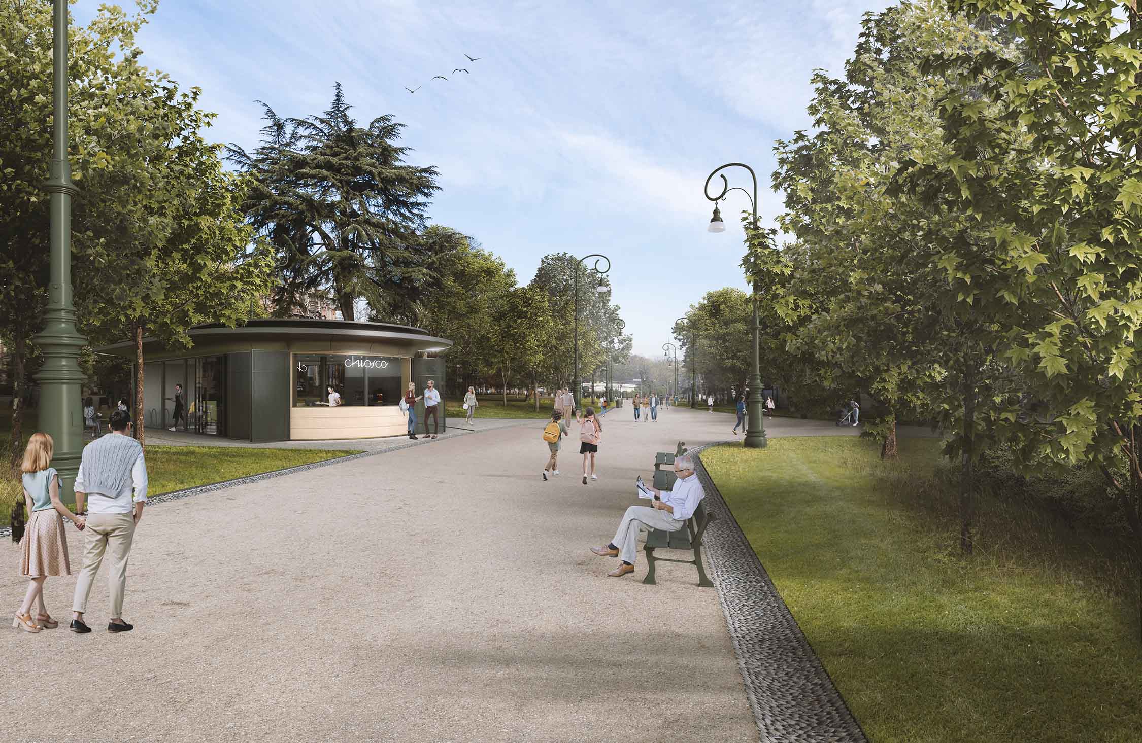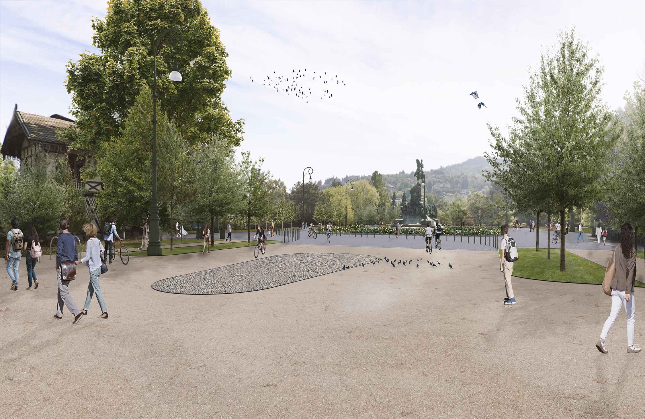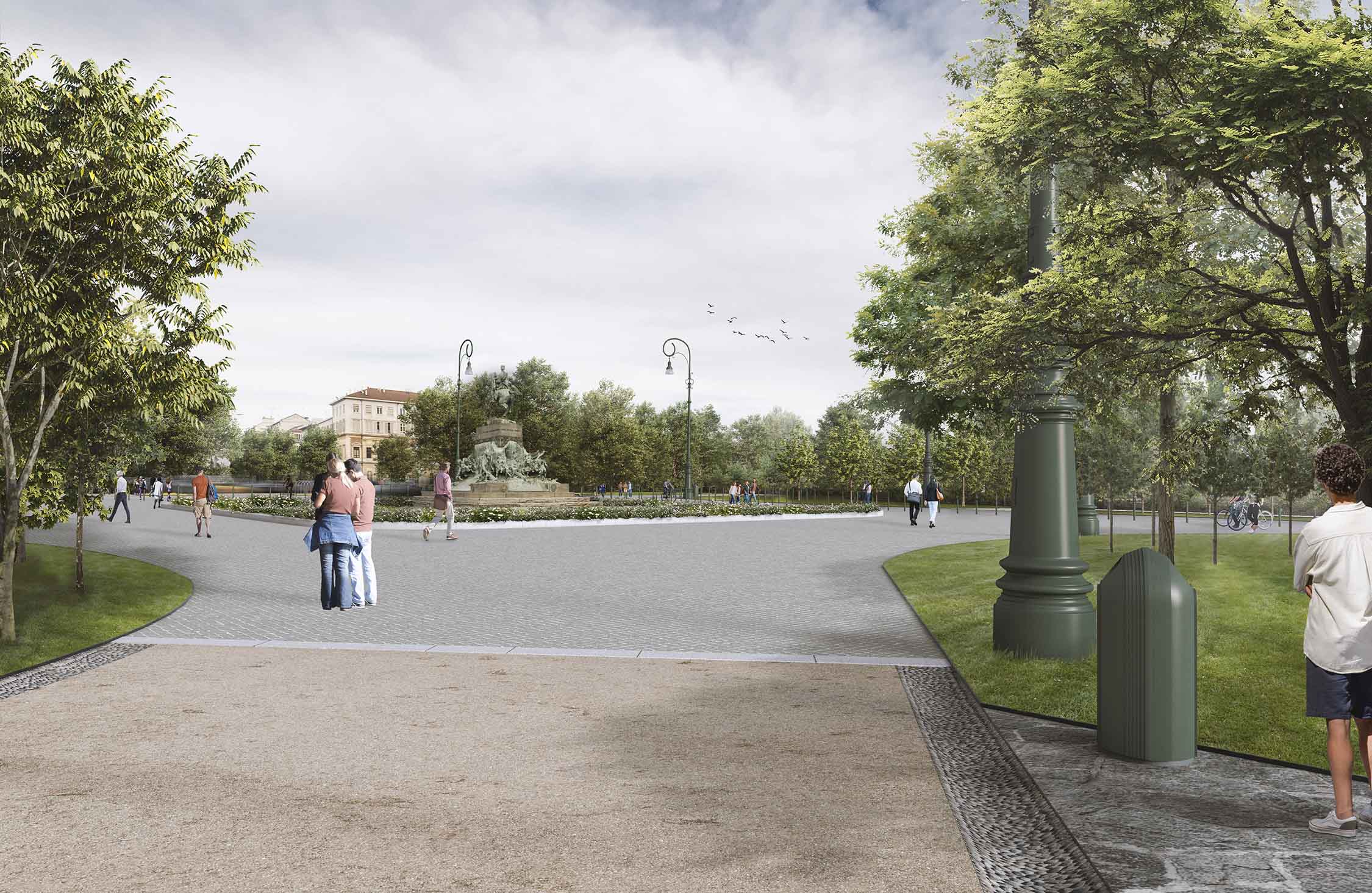 È prevista la riduzione della sezione di alcuni viali per aumentare le aree a prato e la sostituzione dell’asfalto con pavimentazioni drenanti.