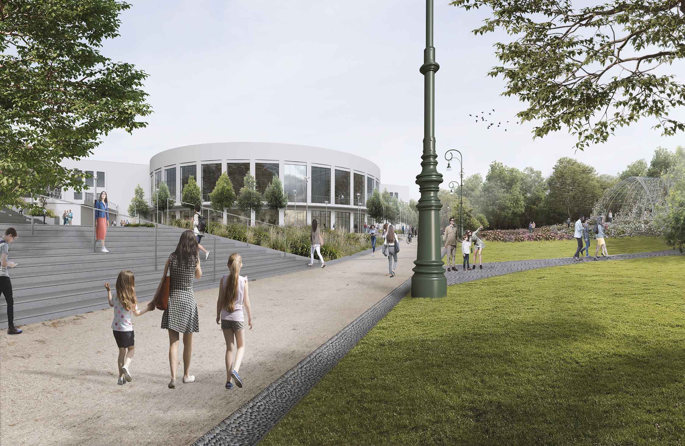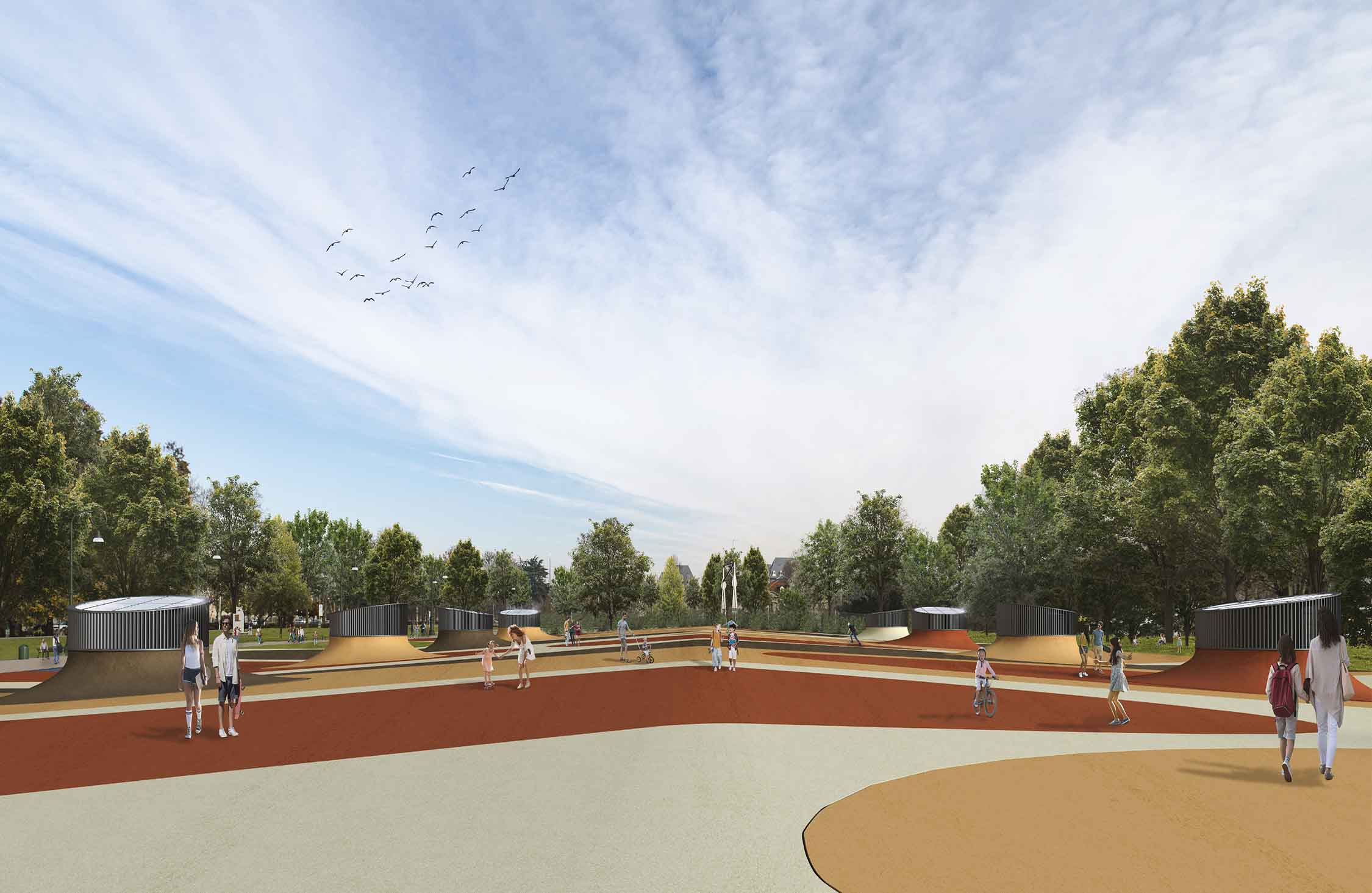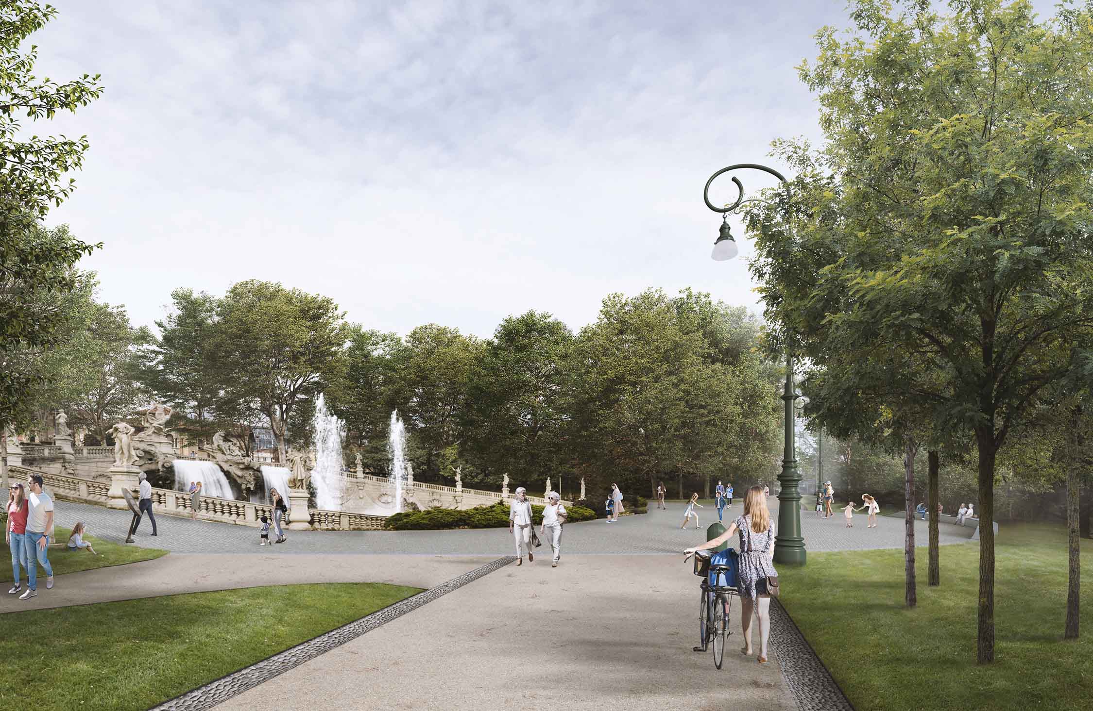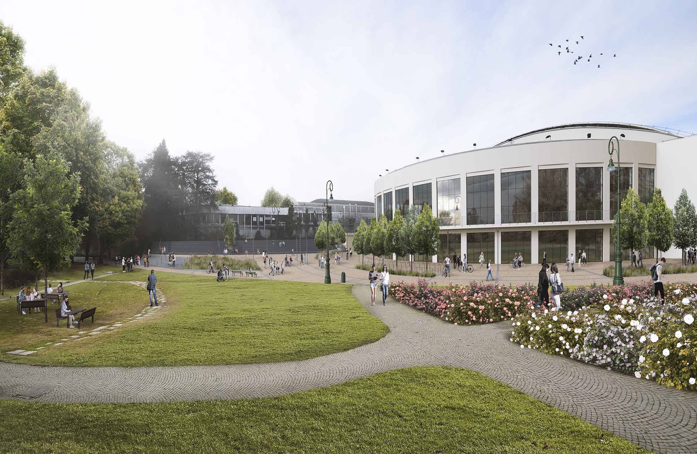 È prevista la riduzione della sezione di alcuni viali per aumentare le aree a prato e la sostituzione dell’asfalto con pavimentazioni drenanti.
