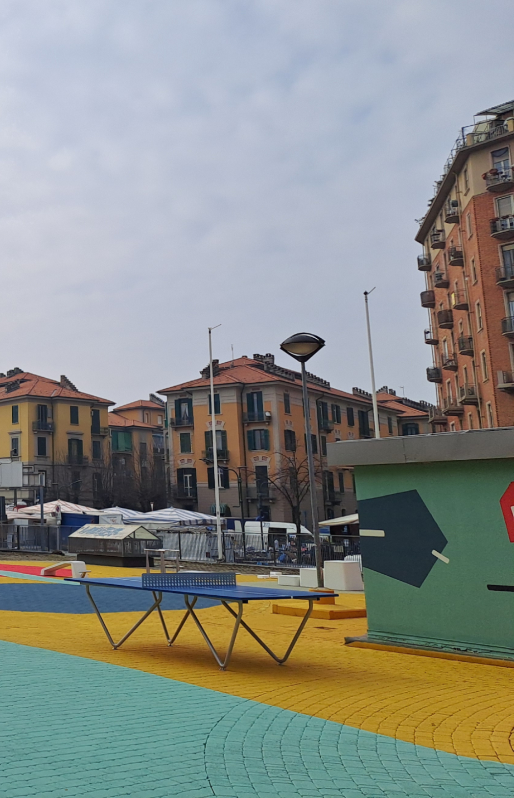 Con lo scopo di rendere più fruibile e funzionale lo spazio del piazzale antistante l’edificio, affinché sia utilizzato dagli impiegati, ma anche dalle cittadine e dai cittadini del quartiere, è stato avviato un progetto di riqualificazione con un intervento decorativo della pavimentazione che evidenzia i percorsi pedonali di accesso al palazzo, l’allestimento con nuovi elementi di arredo (gazebo ombreggianti, tavoli e sedute), attrezzature sportive (tavoli da ping-pong e attrezzi fitness) e una piccola area a verde.